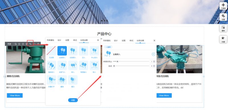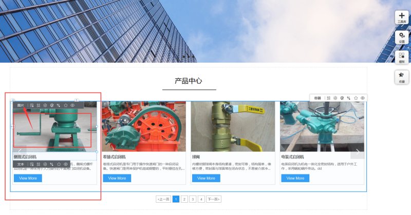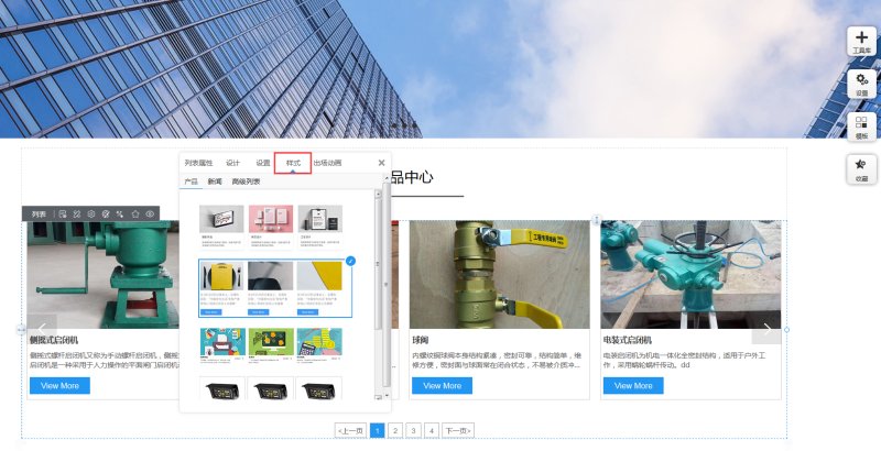8,除了在样式里改列表样式外,还可以点击第一个产品里的图片、标题、描述、按钮等,来修改列表样式。如点击第一个产品里的图,会显示图片属性,可以修改图片的样式。