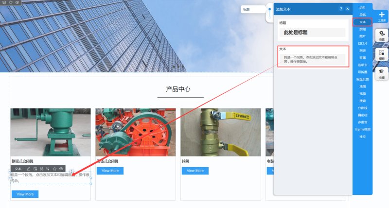10,如果需要添加简介,可以往第一个产品里添加文本控件。