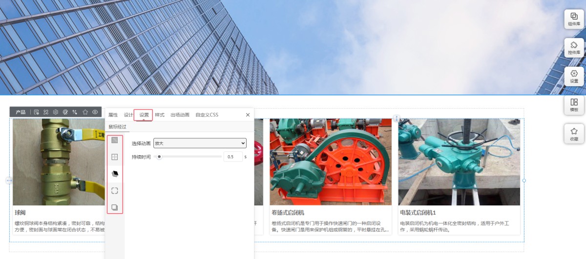 6,在设置里,可以设置鼠标经过时的背景色、边框、动画、圆角和阴影。