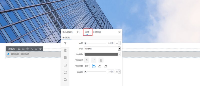5,在“设置”里,可以设置鼠标经过面包屑时,控件的文本样式、ICON大小和颜色、背景色、边框、圆角和阴影。