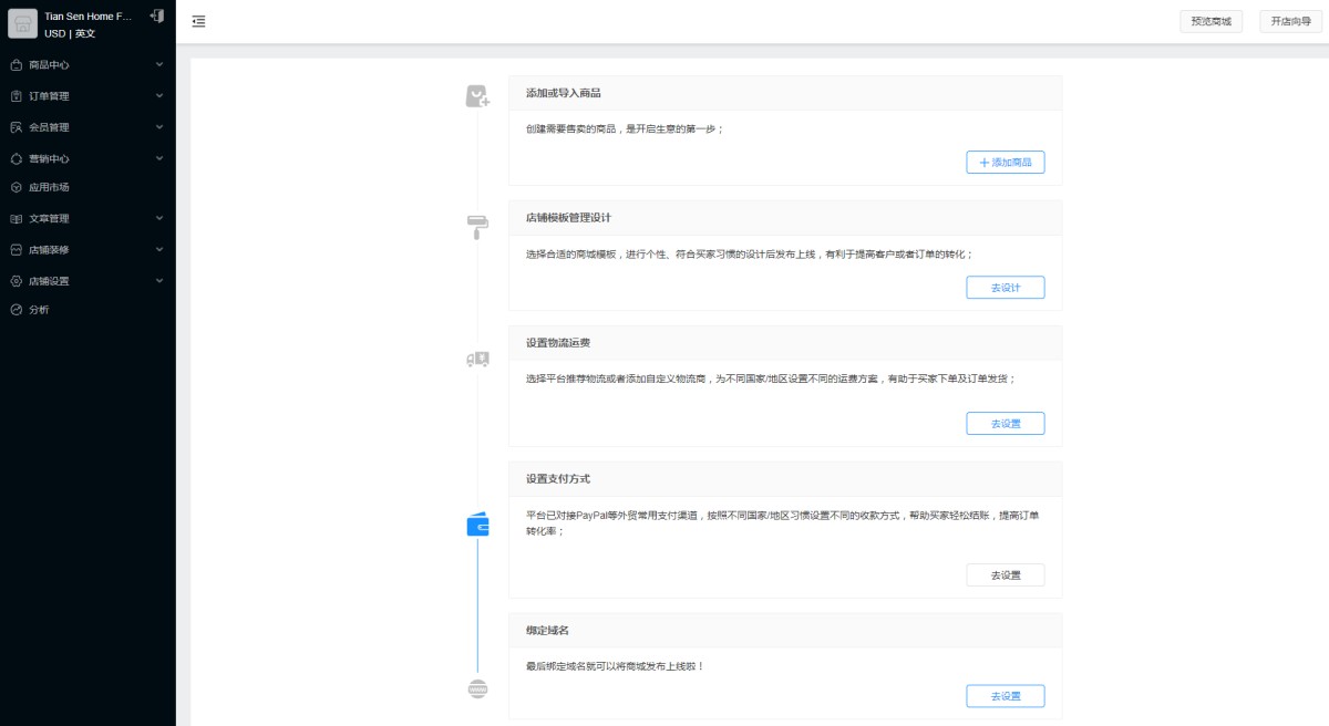 3,点击创建后,即可进入到商家管理后台,店铺的创建就完成了。