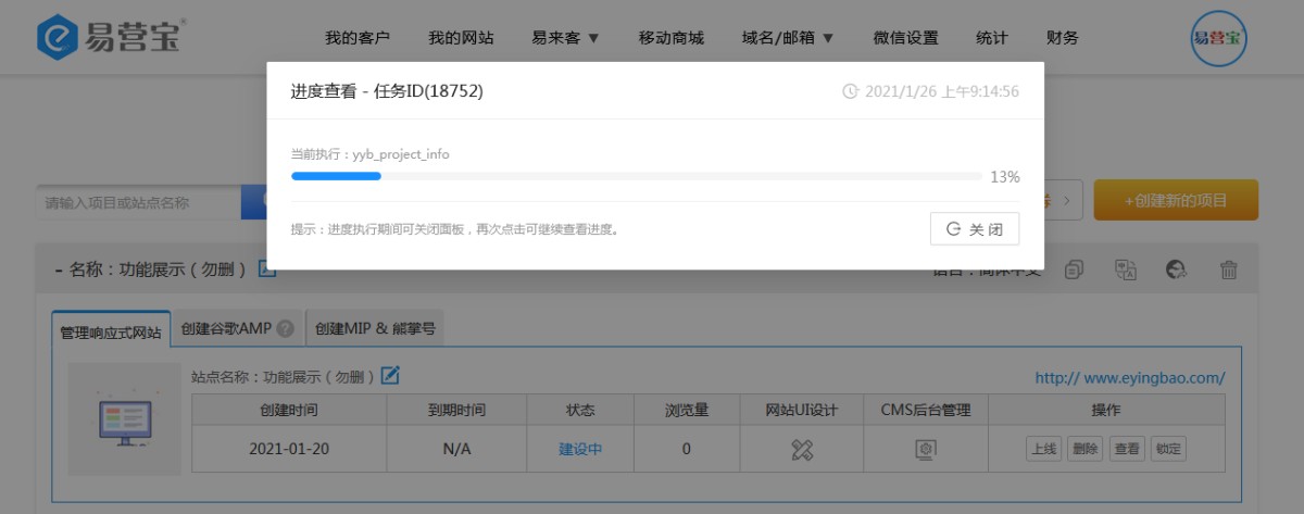 4,登录B账号,在项目列表里就会都显示复制的网站了。复制出的网站可自行修改,不影响原网站。