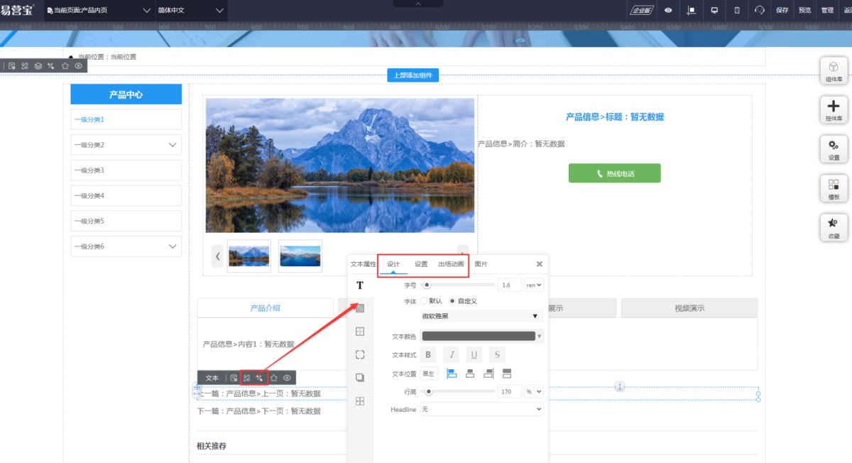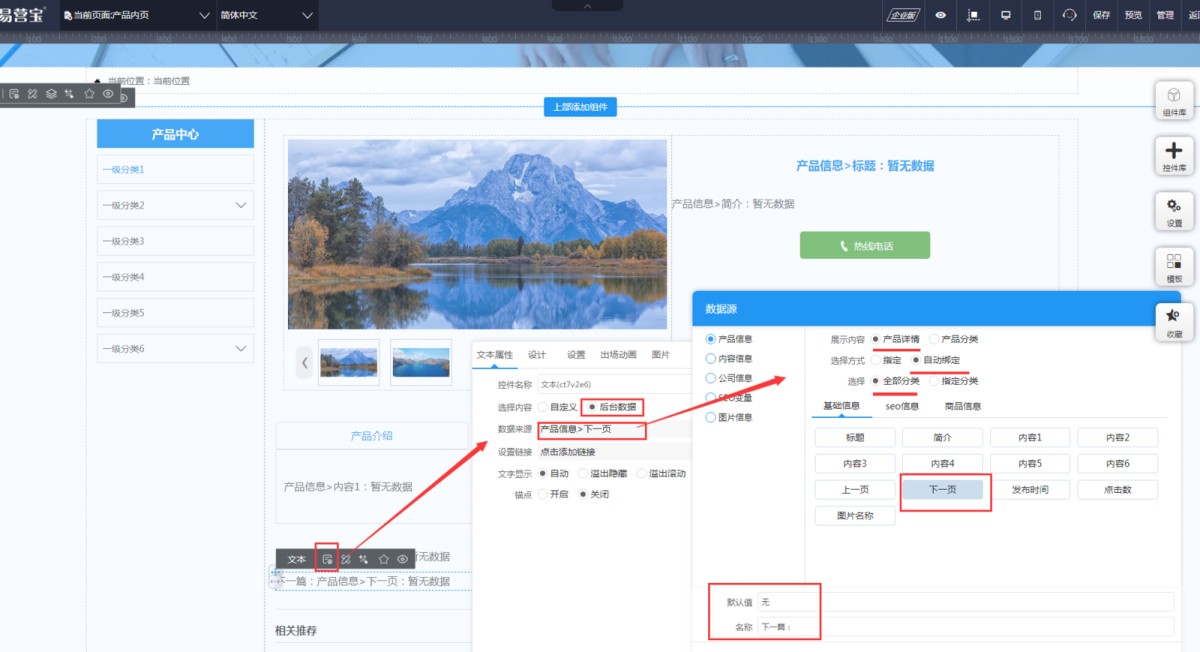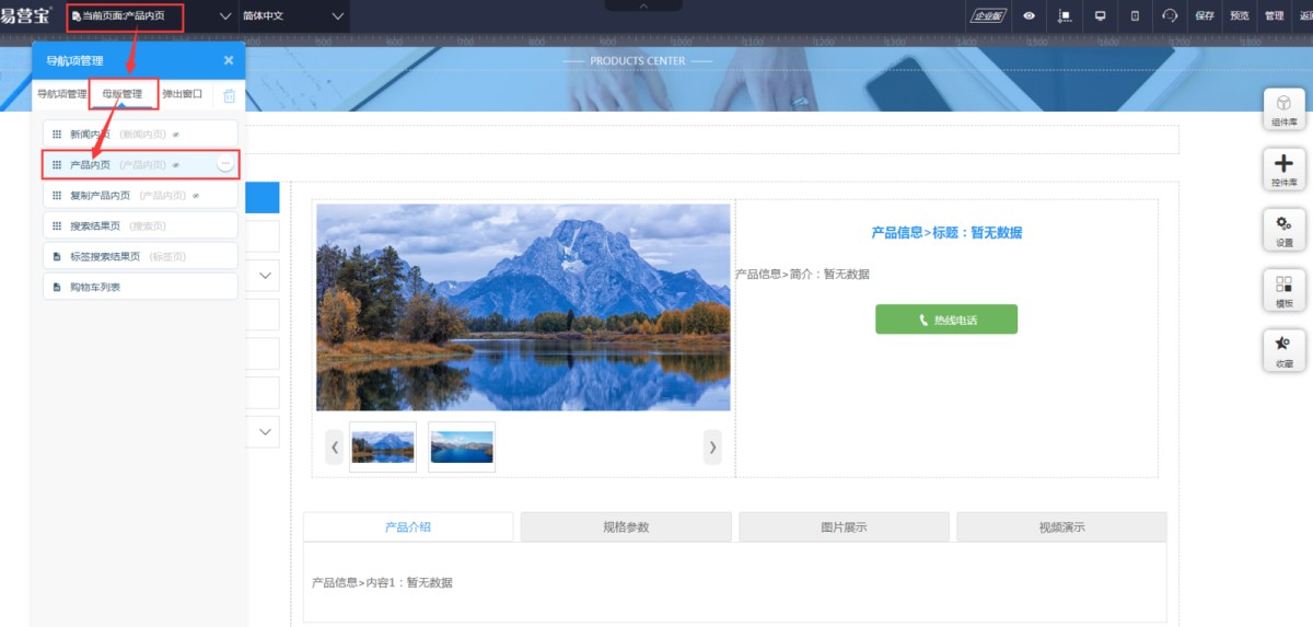 1,在导航项管理-母版管理里,点击进入产品内页(新闻的话进新闻内页)