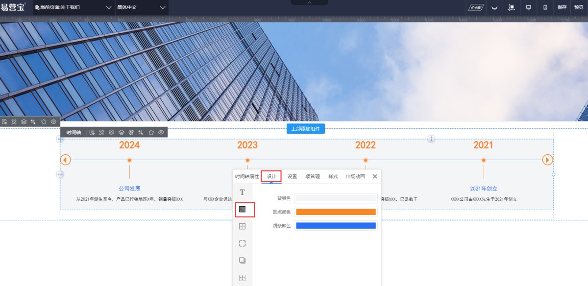 5,在设计-背景属性里,可以设置时间轴控件整体的背景色、圆点和线条的颜色。