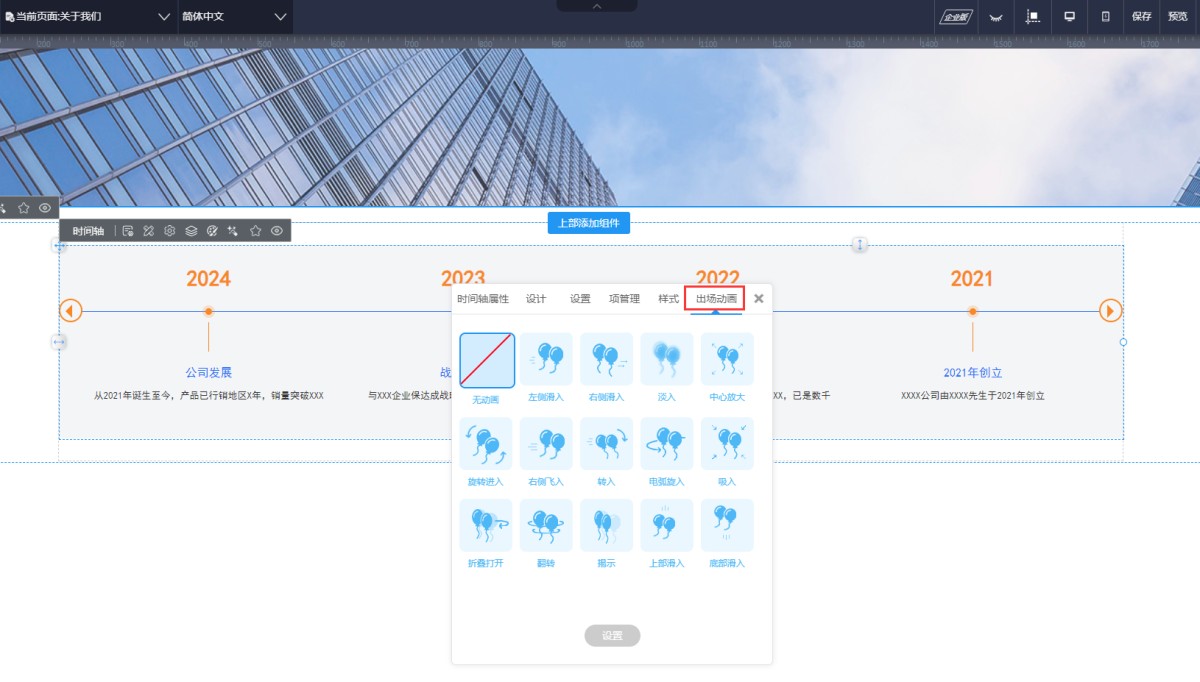 1,从控件库里选择选择时间轴控件,添加到页面上。系统提供两种时间轴样式,横线展示和竖向展示的,根据需求选择合适的样式。