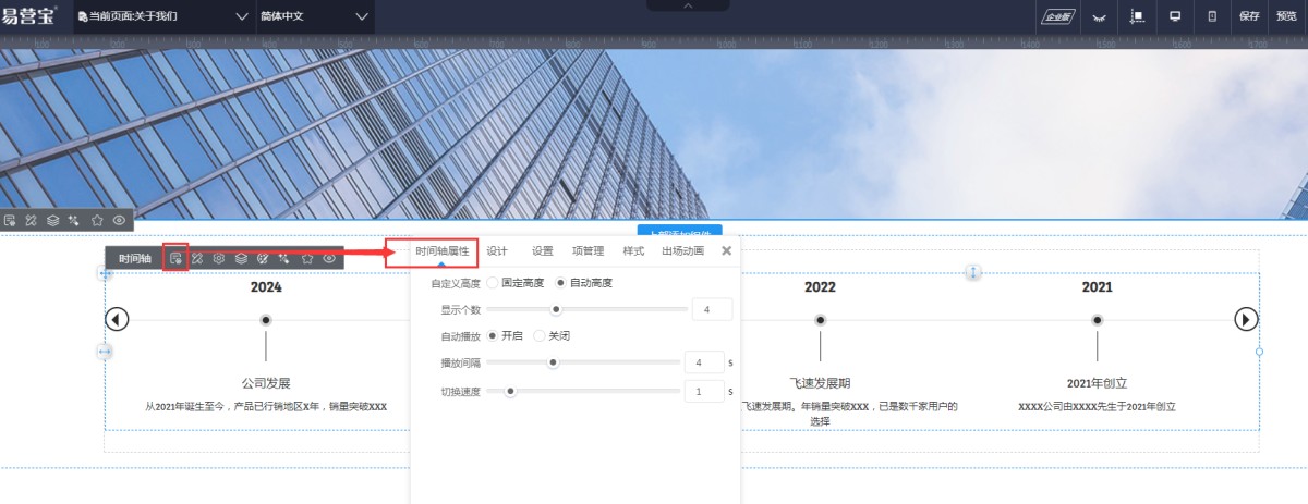 显示个数是横向时间轴的功能,可以设置默认显示几个项,超出的可以点击左右切换按钮查看。