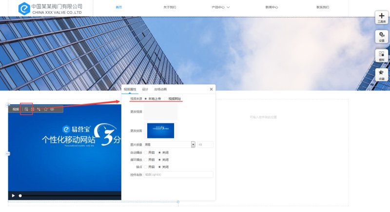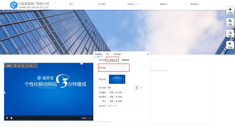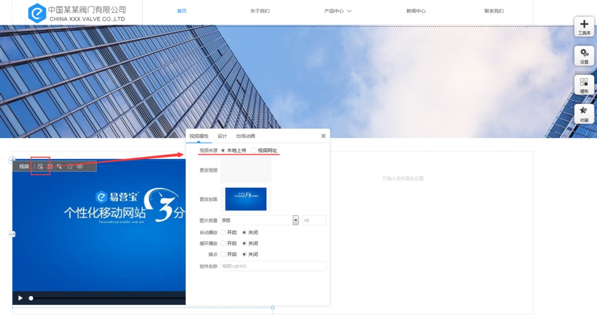 2,在视频属性里,可以选择视频的来源,包含本地上传和视频网址。视频网站是指调用第三方视频网站上的视频,如YouTube、腾讯视频等。