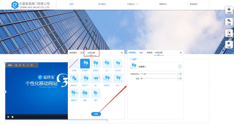 6,在出场动画里,我们提供12种动画效果,并且可以设置动画的持续时间和延迟时间。