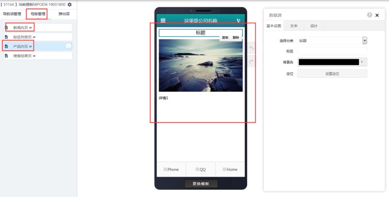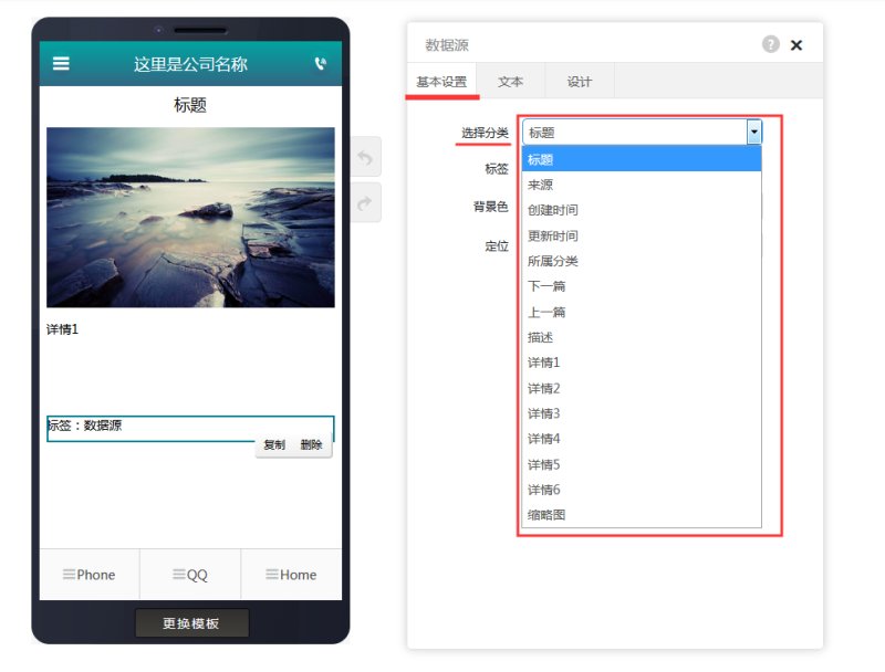1,数据源控件一般是添加到产品新闻内页里,用来调用后台的产品新闻数据的。产品新闻内页里,系统会默认带数据源,分别调用标题、缩略图和详情1。