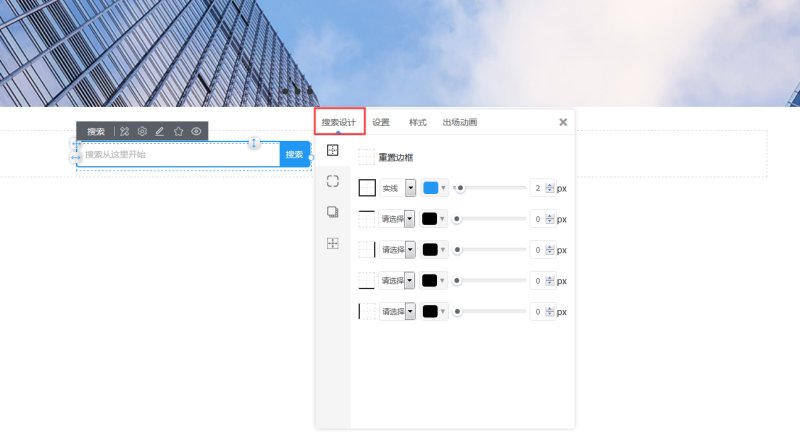 7,在搜索设计里,可以设置搜索控件整体的边框、圆角、阴影和定位。