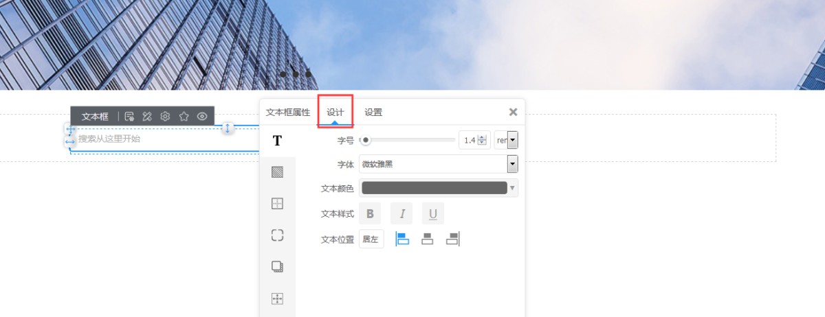 12,在文本框属性-设计里,可以设置文本的样式、文本框的背景色、边框、圆角、阴影。