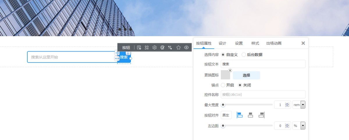 16,搜索控件上的按钮,无需设置链接。其他属性同普通按钮一致,具体操作可参考http://help.eyingbao.com/products/anniu_6637.html