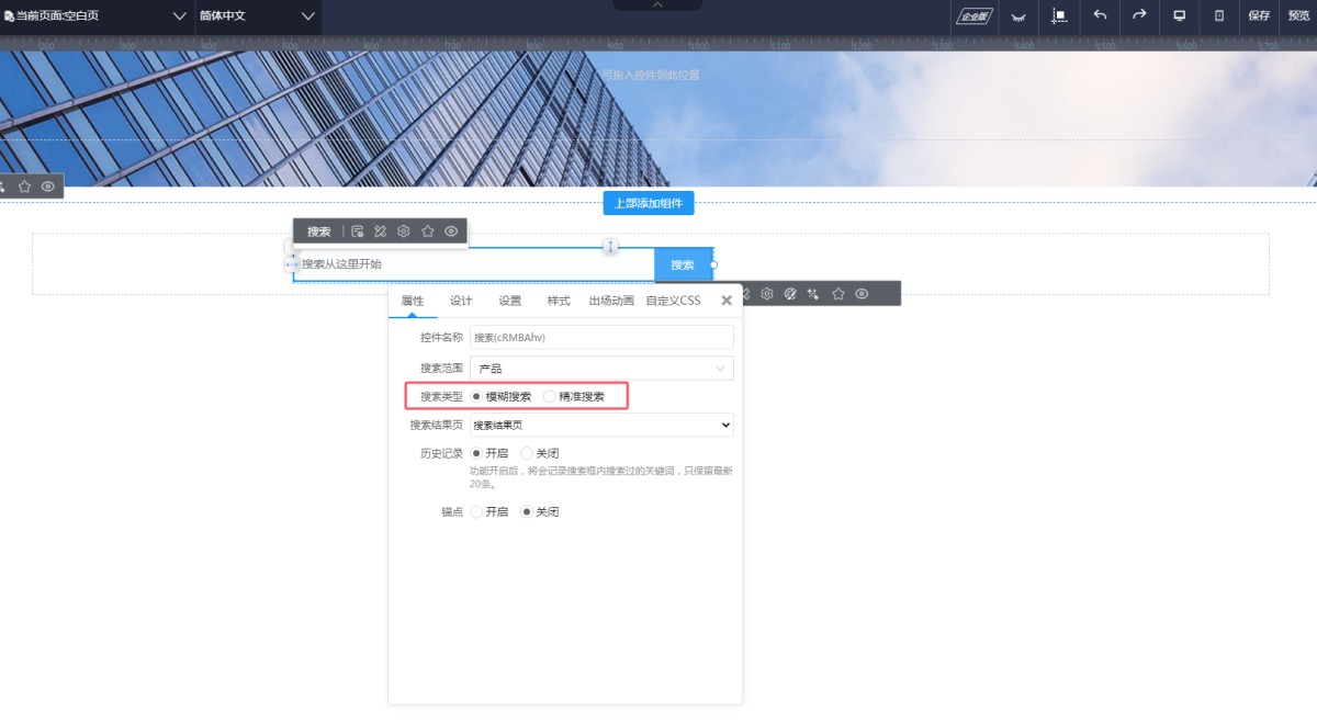 4,设置搜索类型,包含模糊搜索和精准搜索。