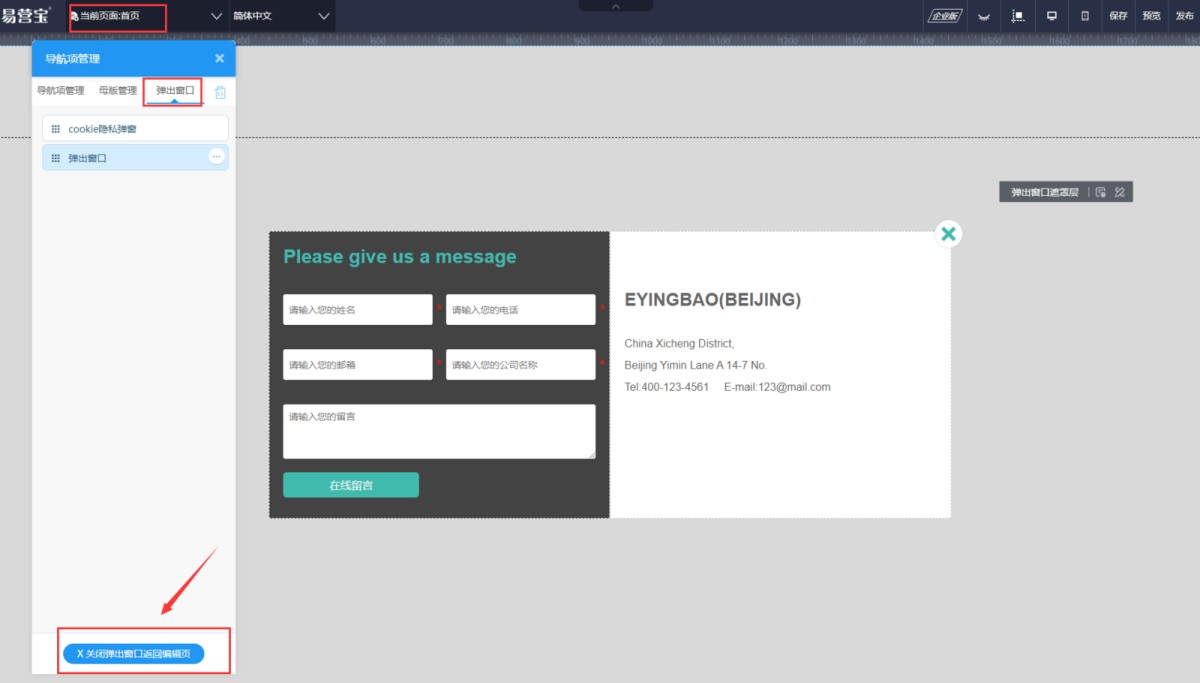3,设置完成后,在导航项管理里关闭弹出窗口即可。最后点击保存。