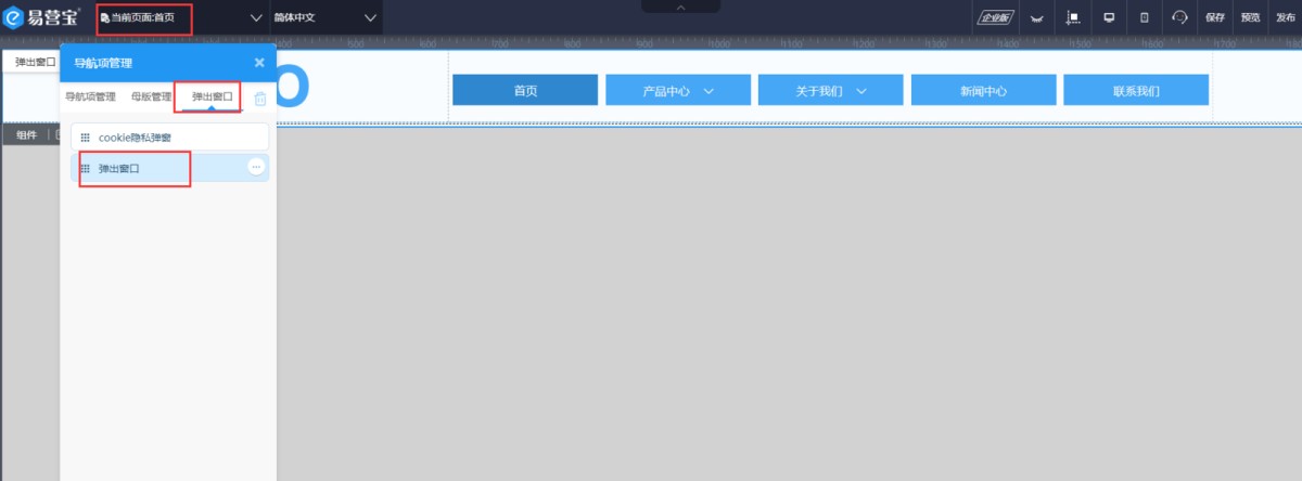 1,在导航项管理-弹出窗口里,找到对应的弹窗,点击展开。然后就可以对弹出窗口里的内容和样式进行修改了。