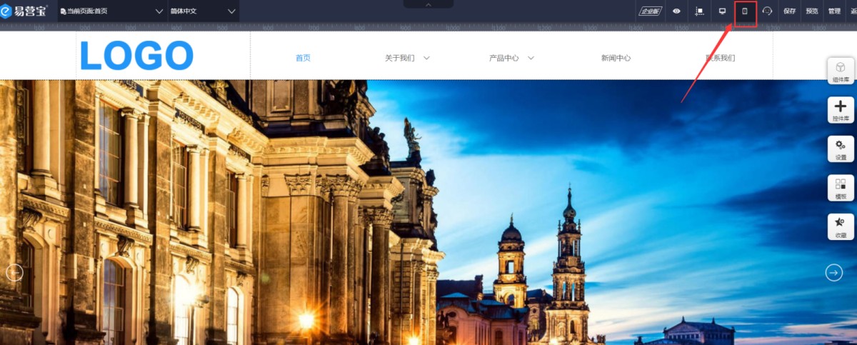 1,在UI编辑页面点击移动编辑按钮,进入移动端编辑页面。
