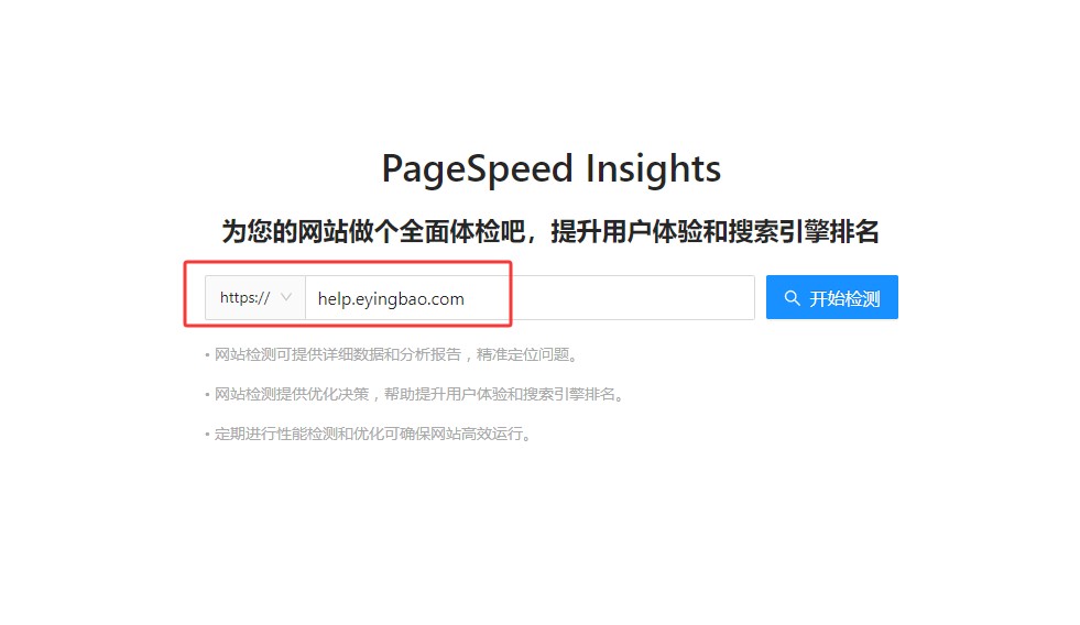 1,打开https://speed.eyingbao.com/ ,输入要检测的域名,点击开始检测