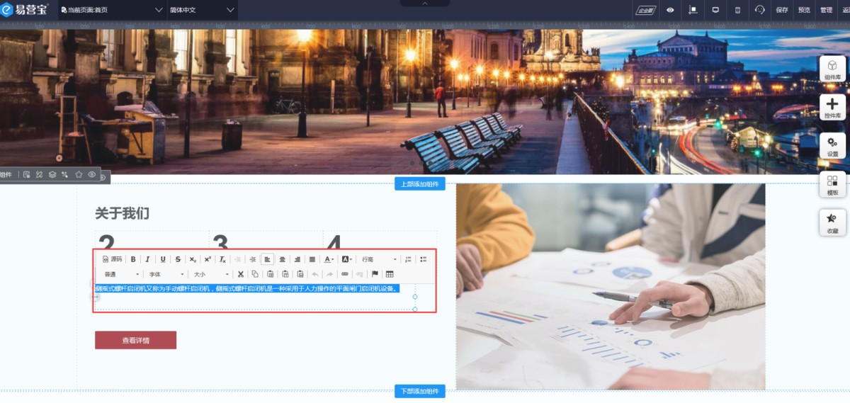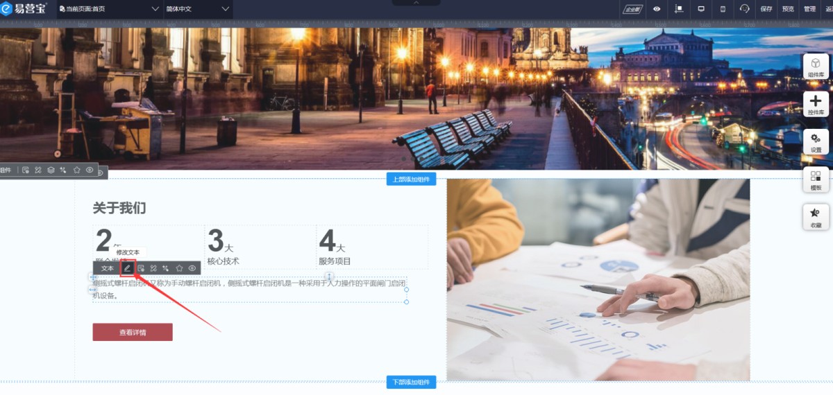 4,点击小铅笔图标,就可以进入文本编辑器里修改文字了。(建议:不要在文本编辑器修改文本的字号字体颜色等属性,最好是在控件属性-设计里修改,这样在手机端还能调整文本的字号等样式。)