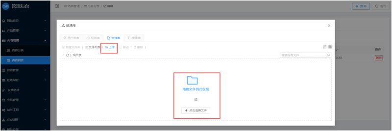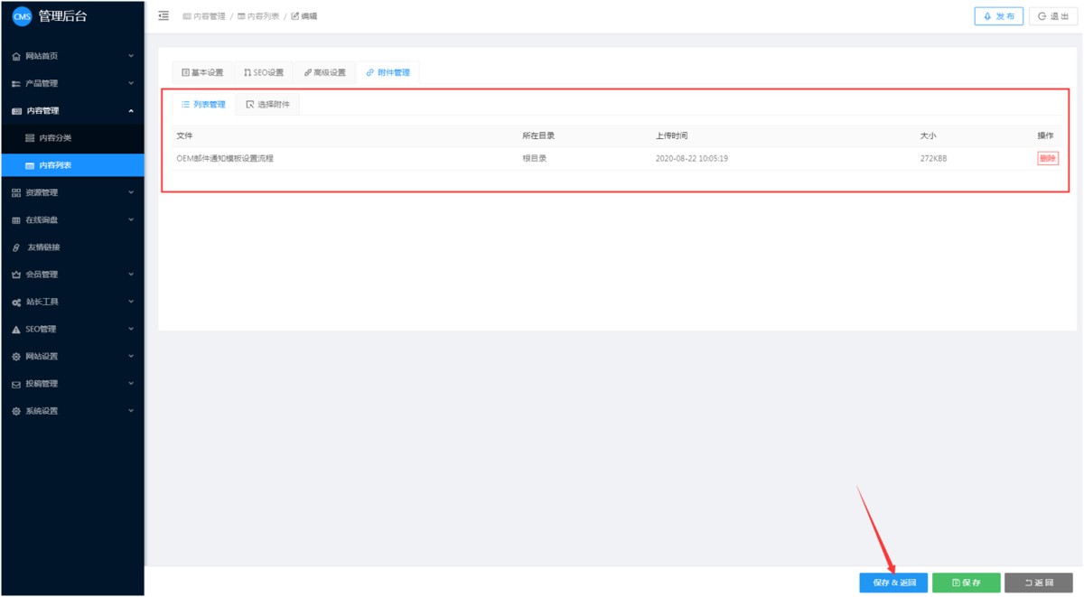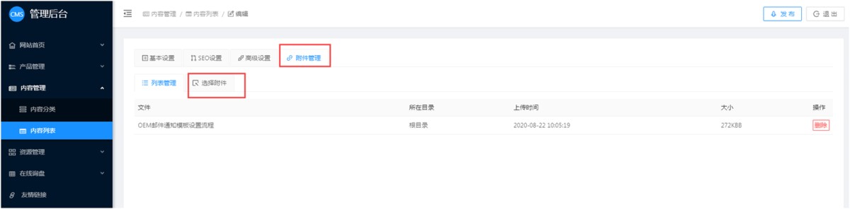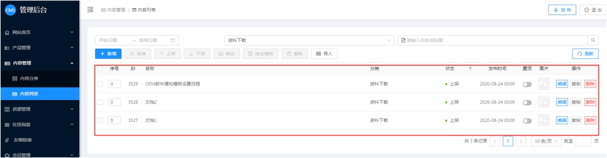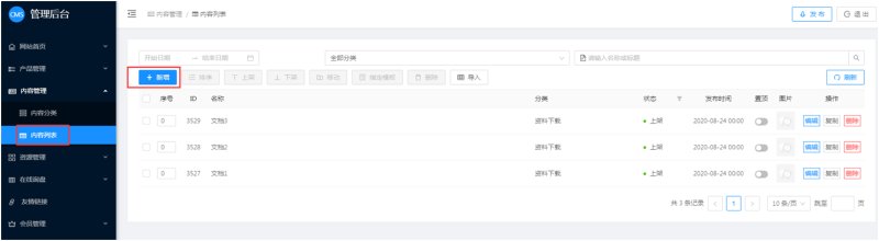 8,所有的文档添加完成后,会在内容列表里展示。后期可修改或删除。