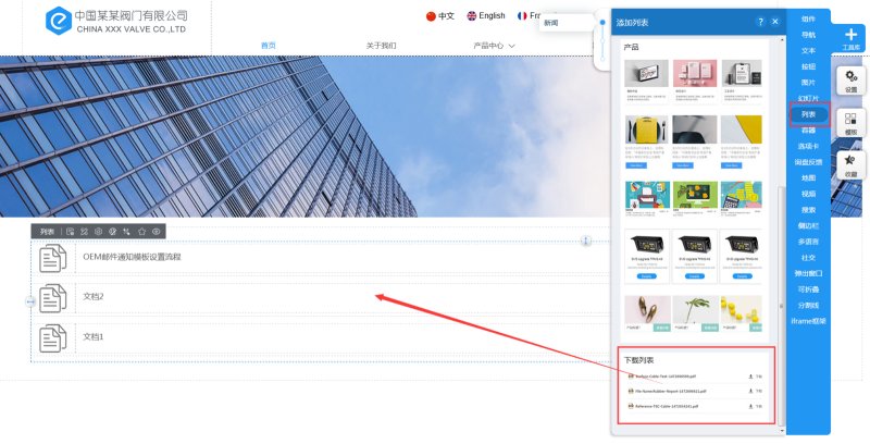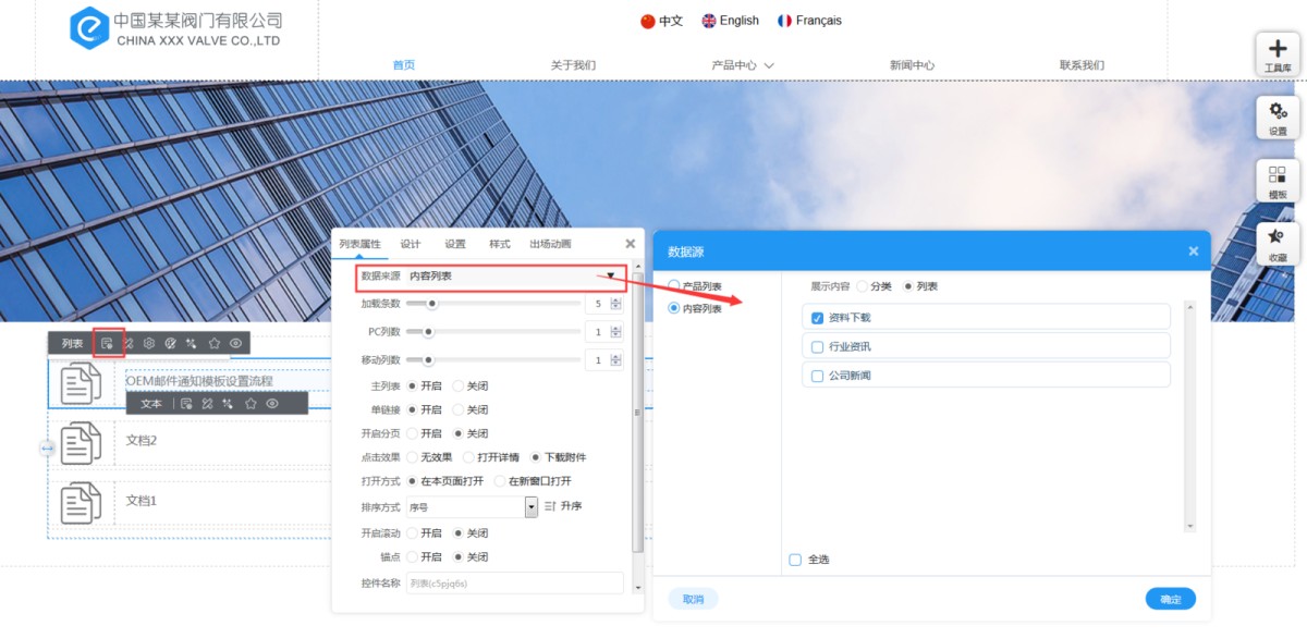 10,在列表的数据源里,选择后台添加的下载分类。在设计里可以对列表样式进行设计和修改。