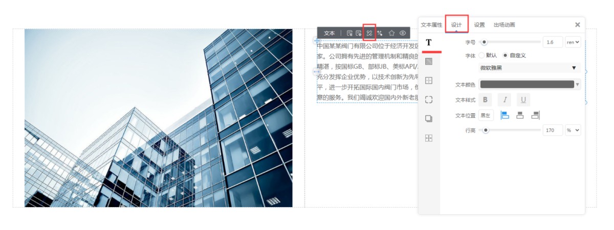 1,响应式PC编辑界面,文本设置字号时有两种设置方法。第一种设置方法是在文本的设计属性里设置字号,这种设置方法在移动端是可以修改字号大小的。