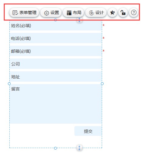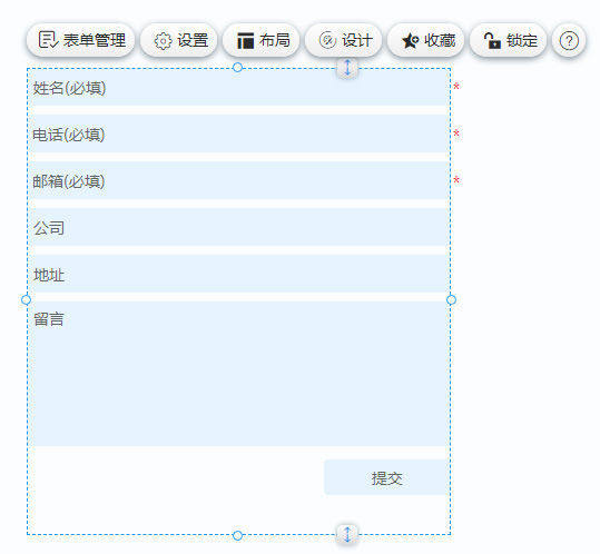 2,点击询盘反馈控件,页面上会出现询盘反馈控件的属性