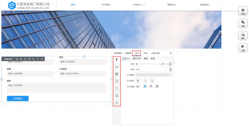 6,在设计里,可以对表单上的文本样式、行间距、背景色、边框、圆角、阴影和定位进行修改。