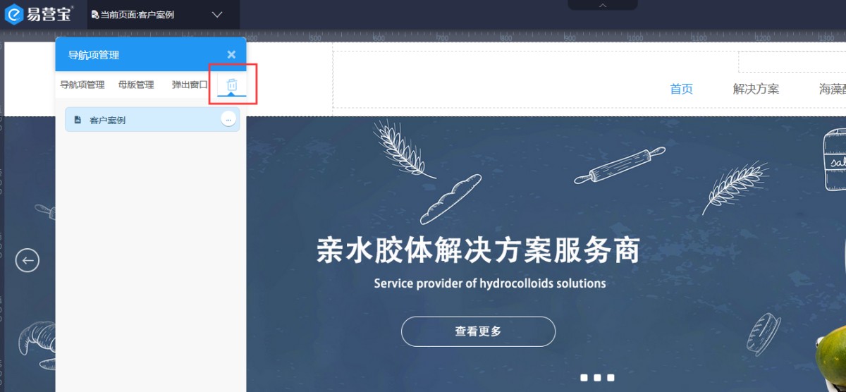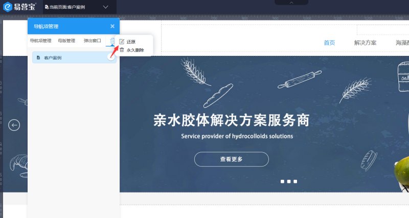 1,UI编辑页面,导航项管理里,页面被删除后,会进入回收站。