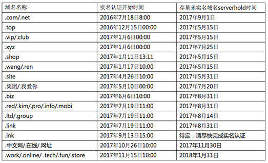 更新:2017年7月19日新增.xyz/.我爱你/.集团存量未实名域名serverhold相关内容;新增.biz/.red/.kim/.pro/.info/.mobi/.ltd/.group/.link实名认证相关内容