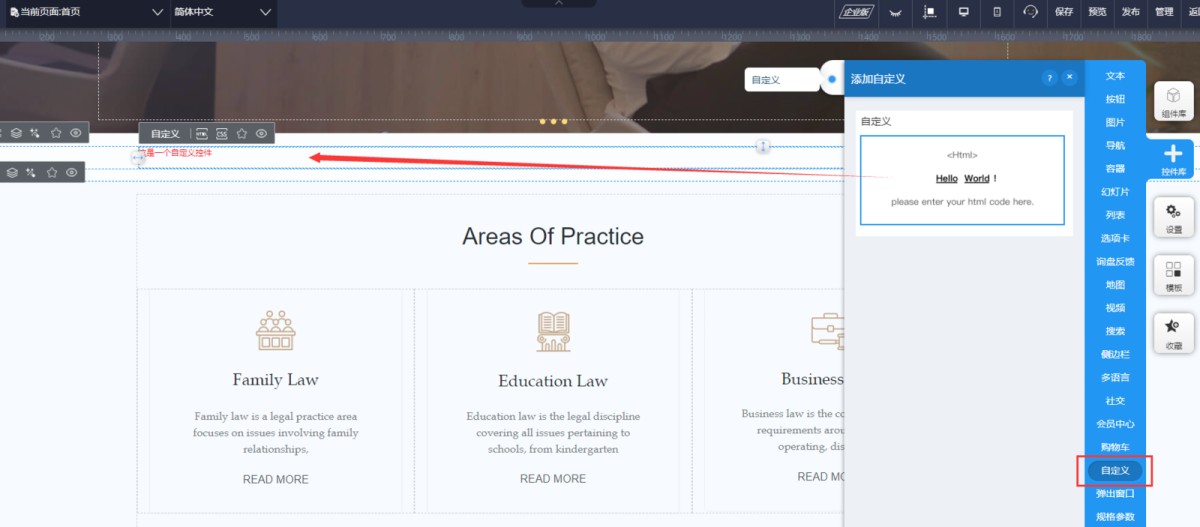 2,自定义控件有2个输入框,一是html,二是CSS。点击可以打开输入框。