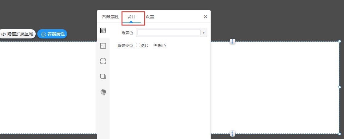 3,在“设计”里,可以设置容器的背景色、边框、圆角、阴影和出场动画效果。