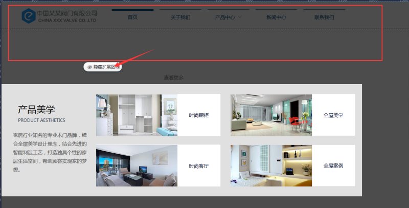 6,点击容器的背景或者点击容器外的蒙层,会出现“隐藏扩展区域”的提示。