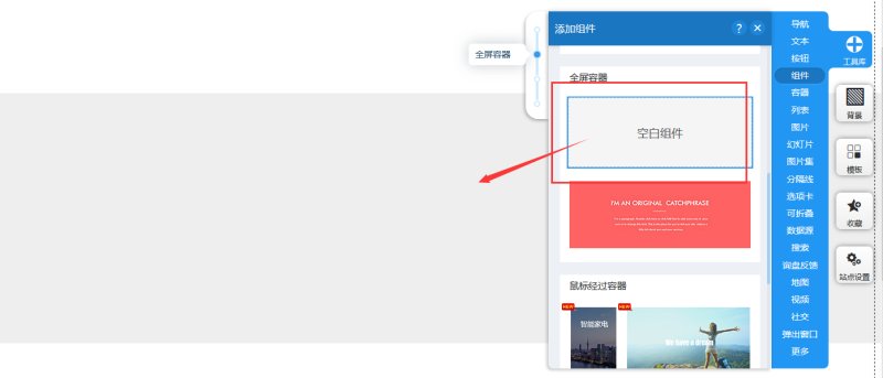 1,从工具库-组件里选全屏容器里的空白组件拖入到页面指定位置。
