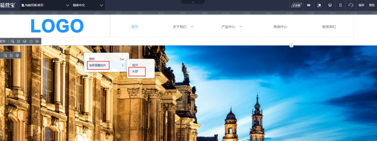 1,检查:在组件区域点击鼠标邮件,选择层叠控件,看下里面是否有头部或底部,如果有,就说明这个组件是添加到头部或底部里了。